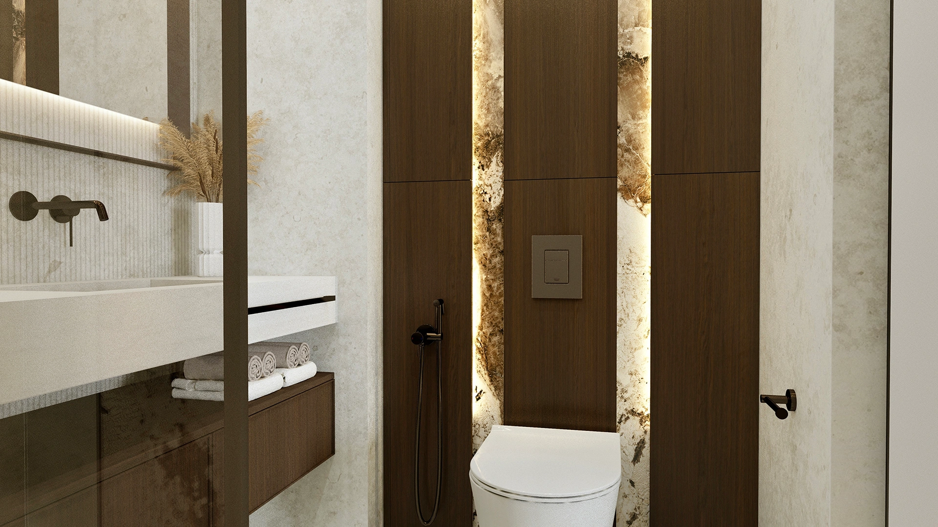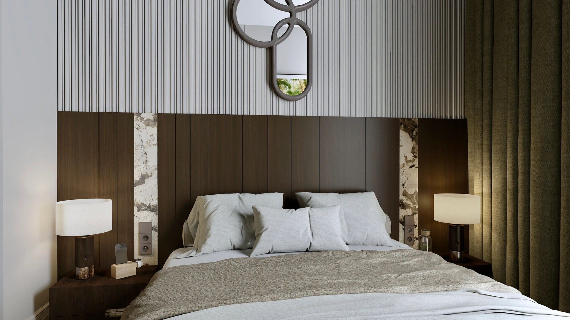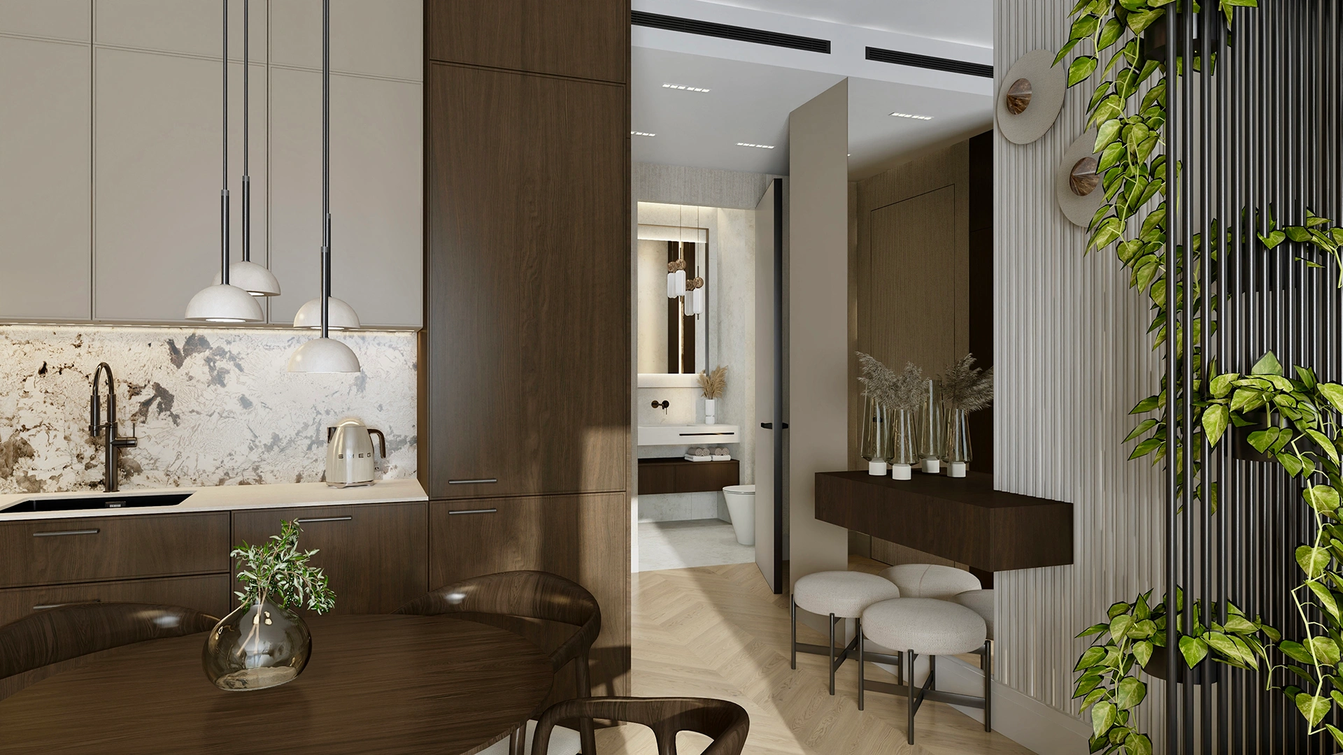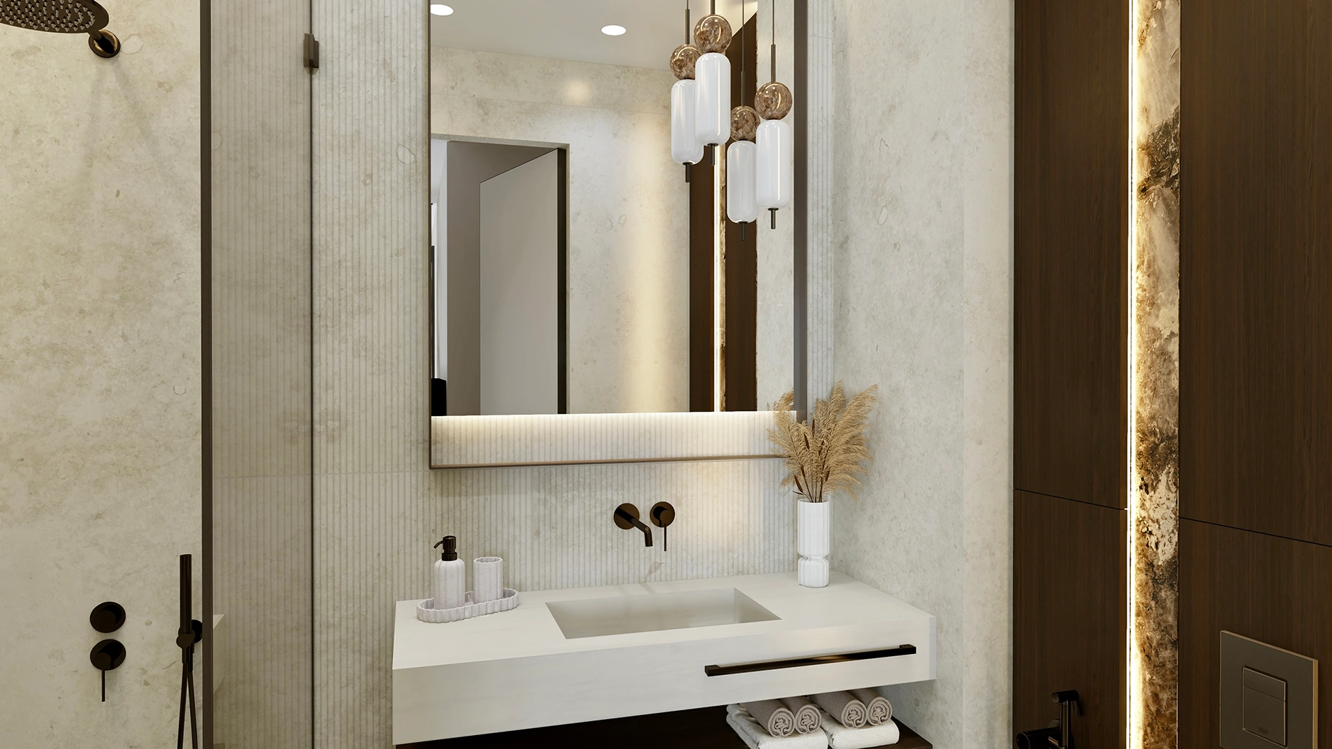 W sypialni i łazience kontynuowana jest ta sama stylistyka – elegancja przełamana subtelną przytulnością. Dzięki temu wnętrze zyskało spójny rytm, a każdy metr kwadratowy pracuje na komfort właściciela.